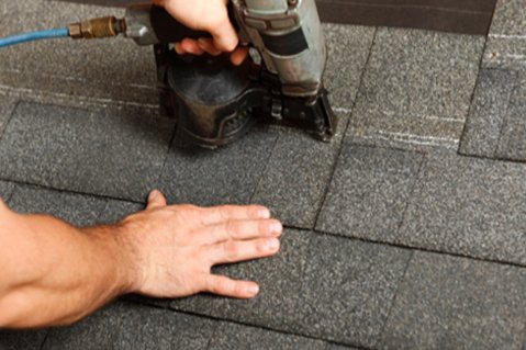 - Монтаж гибкой черепицы. Работа начинается с карнизного ряда. Гонты прибиваются к обрешетке кровельными гвоздями – под одному на каждый лепесток.